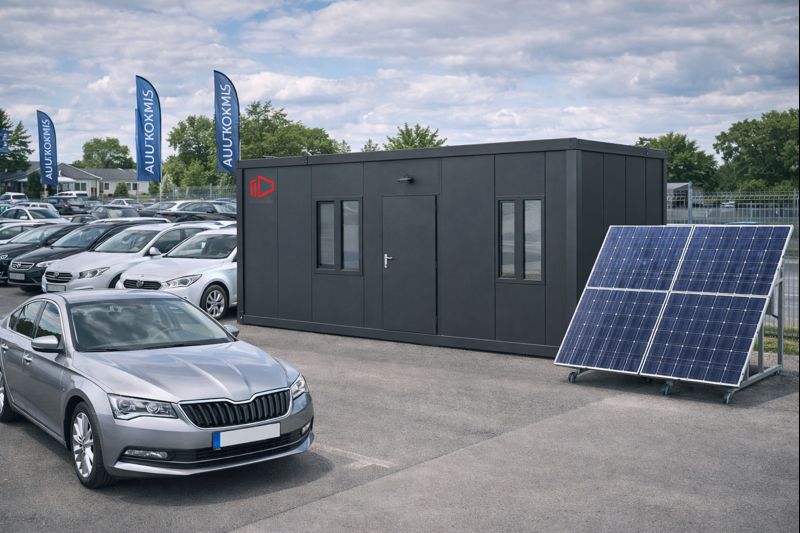 Autonomiczny kontener gotowy do działania bez prądu z sieci.